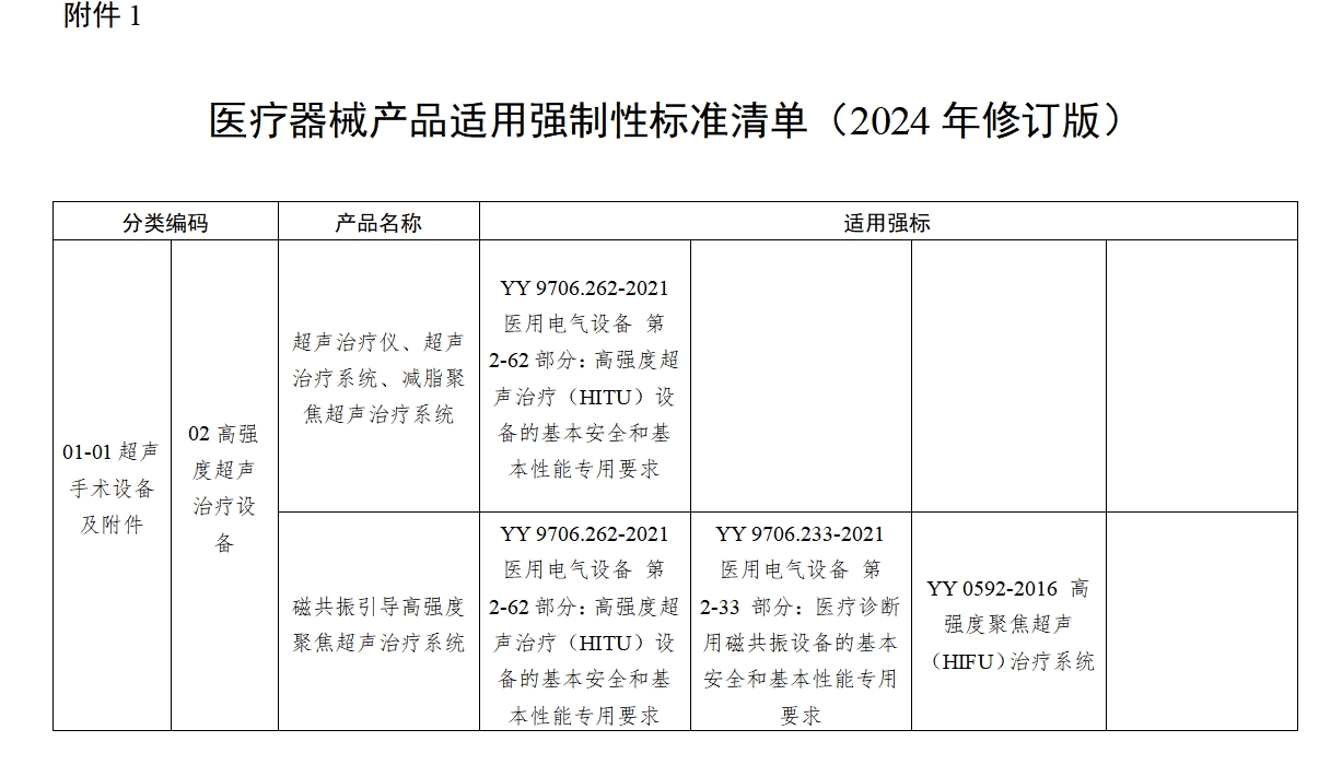醫(yī)療器械產品適用強制性標準清單